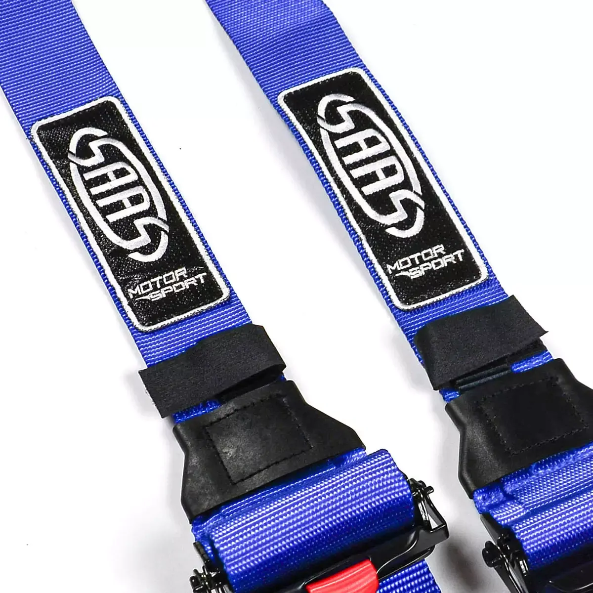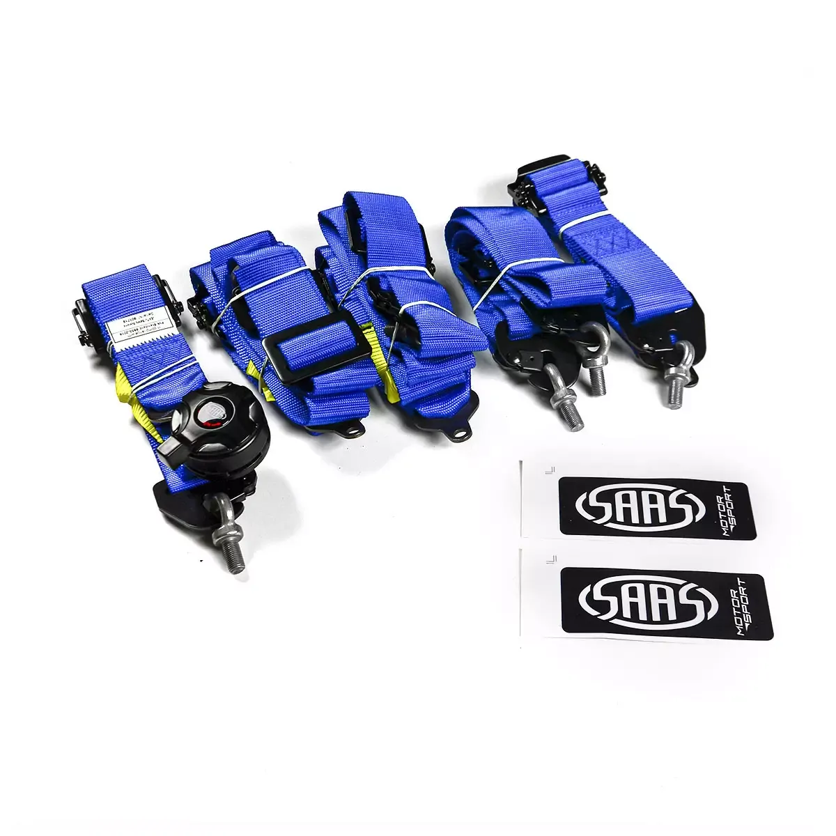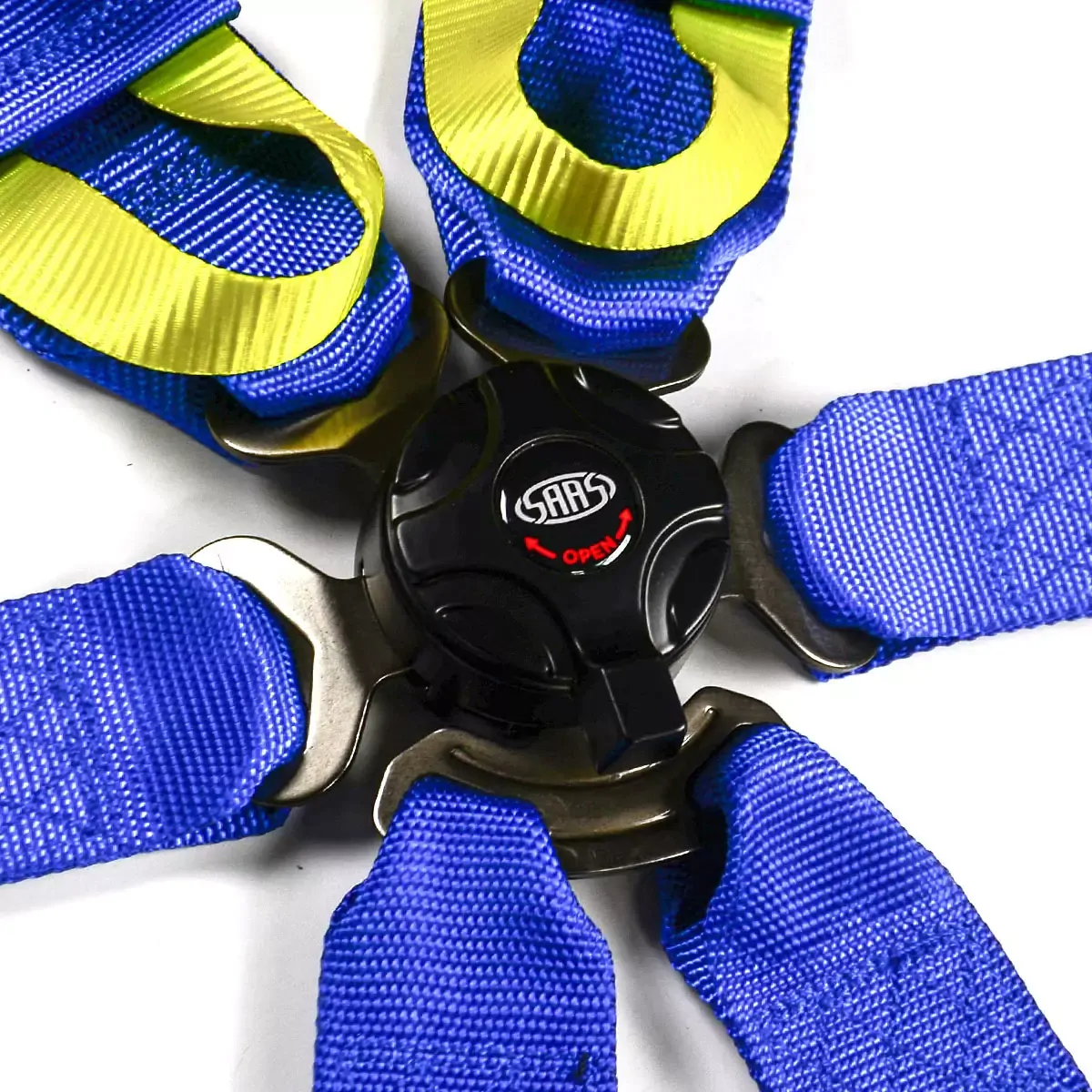 Our SAAS 6-Point camlock HANS / FHR (Frontal head restraint) racing harness system in blue has been designed with maximum safety and performance in mind for demanding motorsports applications.