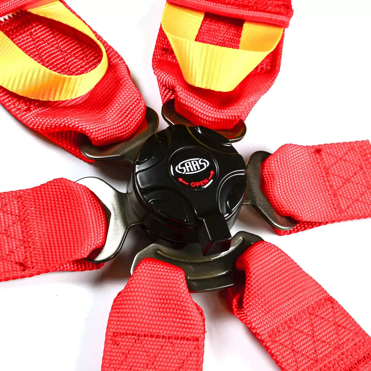 Our SAAS 6-Point camlock HANS / FHR (Frontal head restraint) racing harness system in red has been designed with maximum safety and performance in mind for demanding motorsports applications.