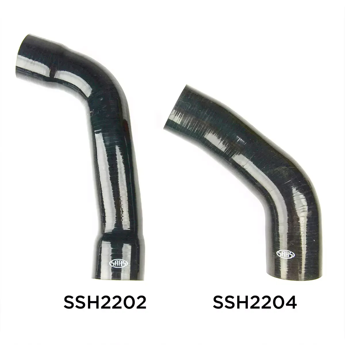 The SAAS SSH2204 is a replacement for the 0006282805 factory hose which joins from the plastic hot side intermediate pipe to the intercooler. The hose is shorter than the more commom SSH2202 and has 55mm pipe openings.