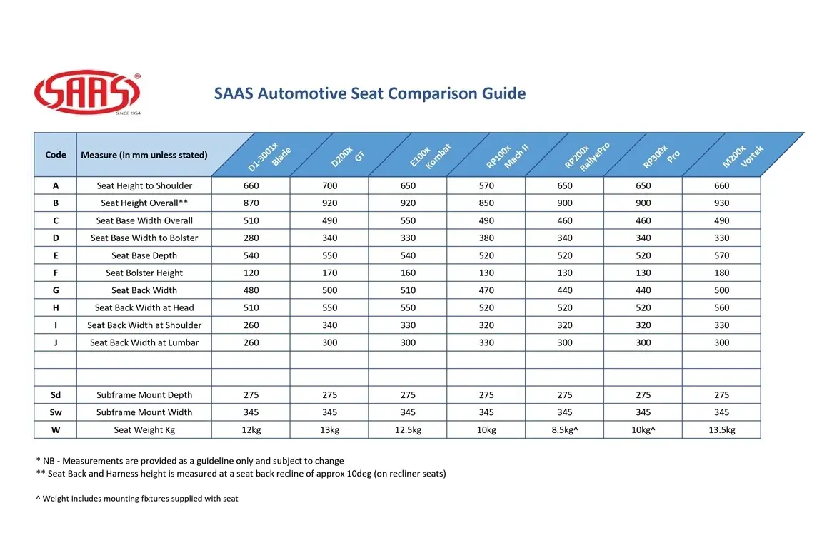 SAAS Seats are best fitted in conjunction with either of the following components: