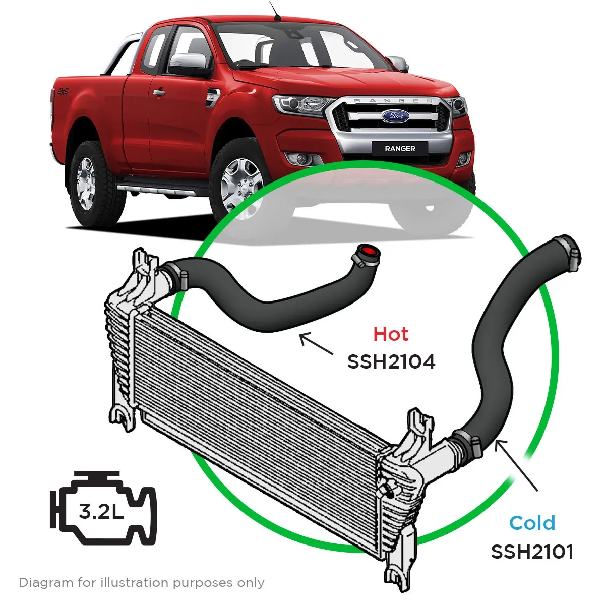 The SAAS SSH2104 is designed to replace the factory hot side 2-piece hose assembly with a single hose. This makes the factory plastic pipe joiner obsolete and reduces a possible point of failure.