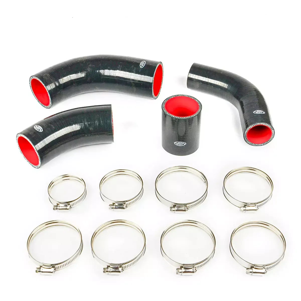 Our 5 Ply Silicone intercooler hoses are the ideal replacement/upgrade for factory or OE style rubber hoses and come supplied with our dual bead stainless hose clamps. Featuring a robust 6mm wall thickness, a SAAS Silicone Turbo Intercooler Hose will provide additional pipe strength whilst remaining flexible and will not expand or collapse in on itself. Our new Stainless Dual Bead clamps provide greater clamping pressure whilst mitigating the risk of cutting into your hose. Don't be caught out with a split rubber hose roadside - upgrade to SAAS Silicone hoses today.