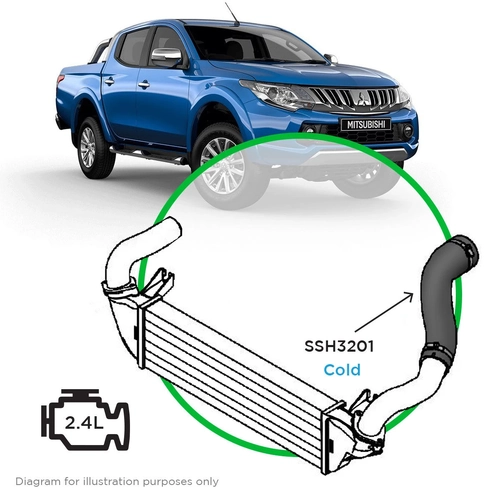 The SAAS SSH3201 is designed to replace the factory intercooler to throttle body cold pipe return (refer to layout diagram). Some trimming of length may be required on Pajero Sport QF.